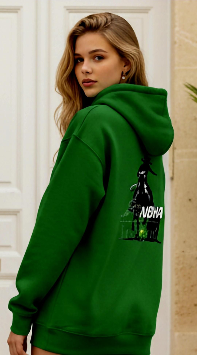 Hoodie is green & White / Hat is Moss Green